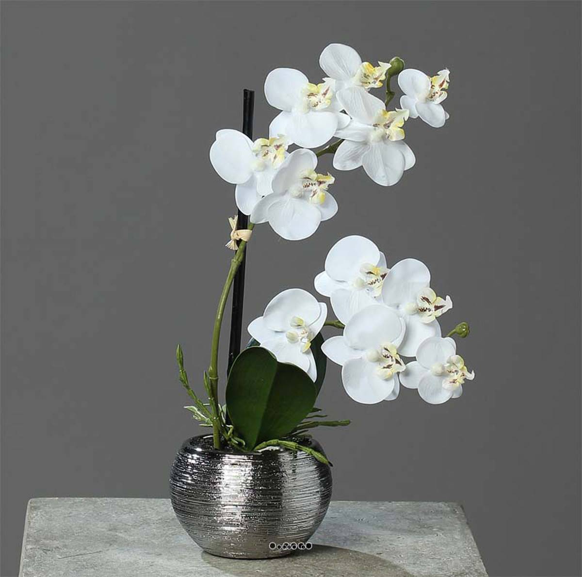 Orchidée phalaenopsis factice 2 hampes en pot céramique :